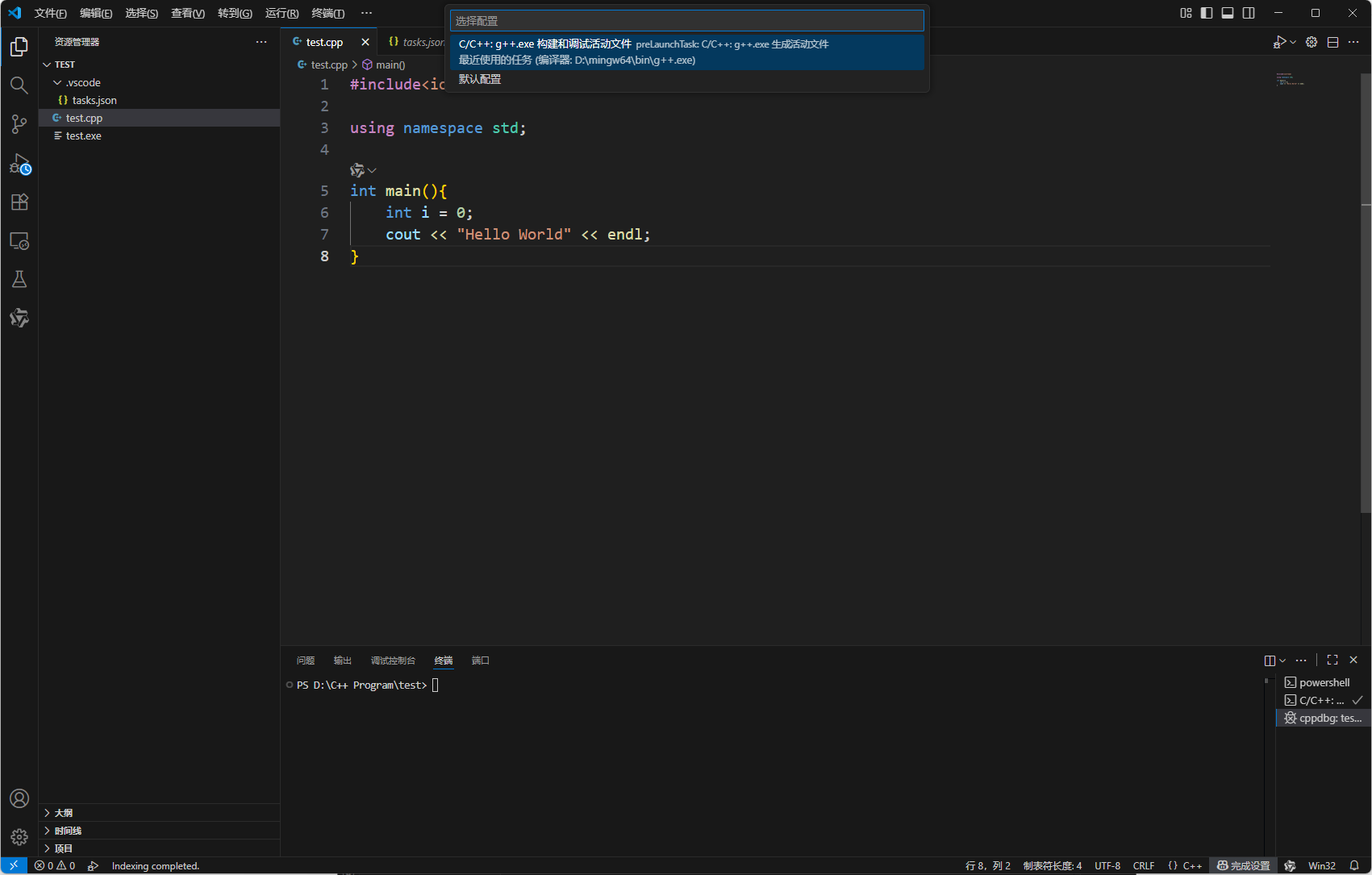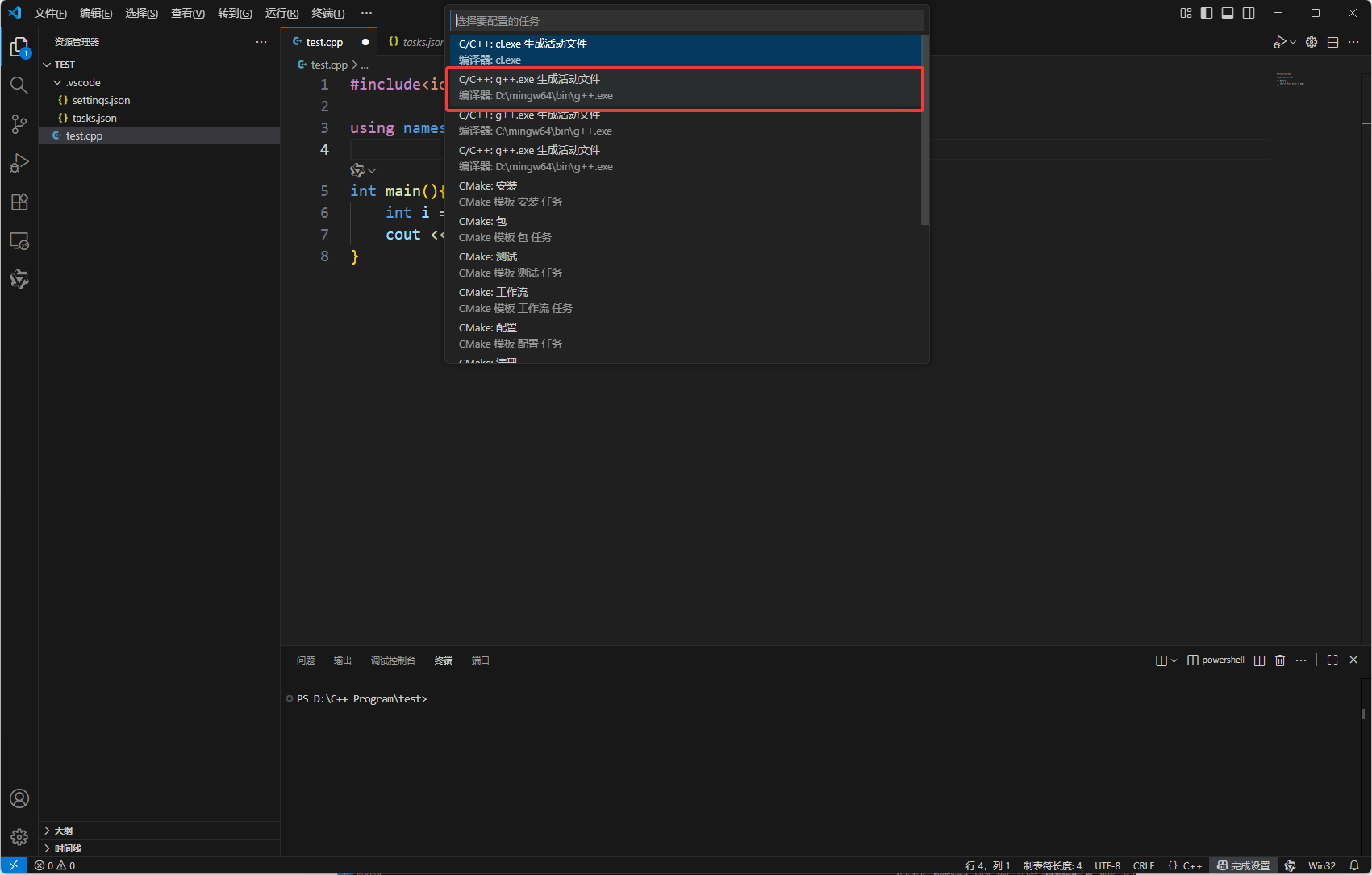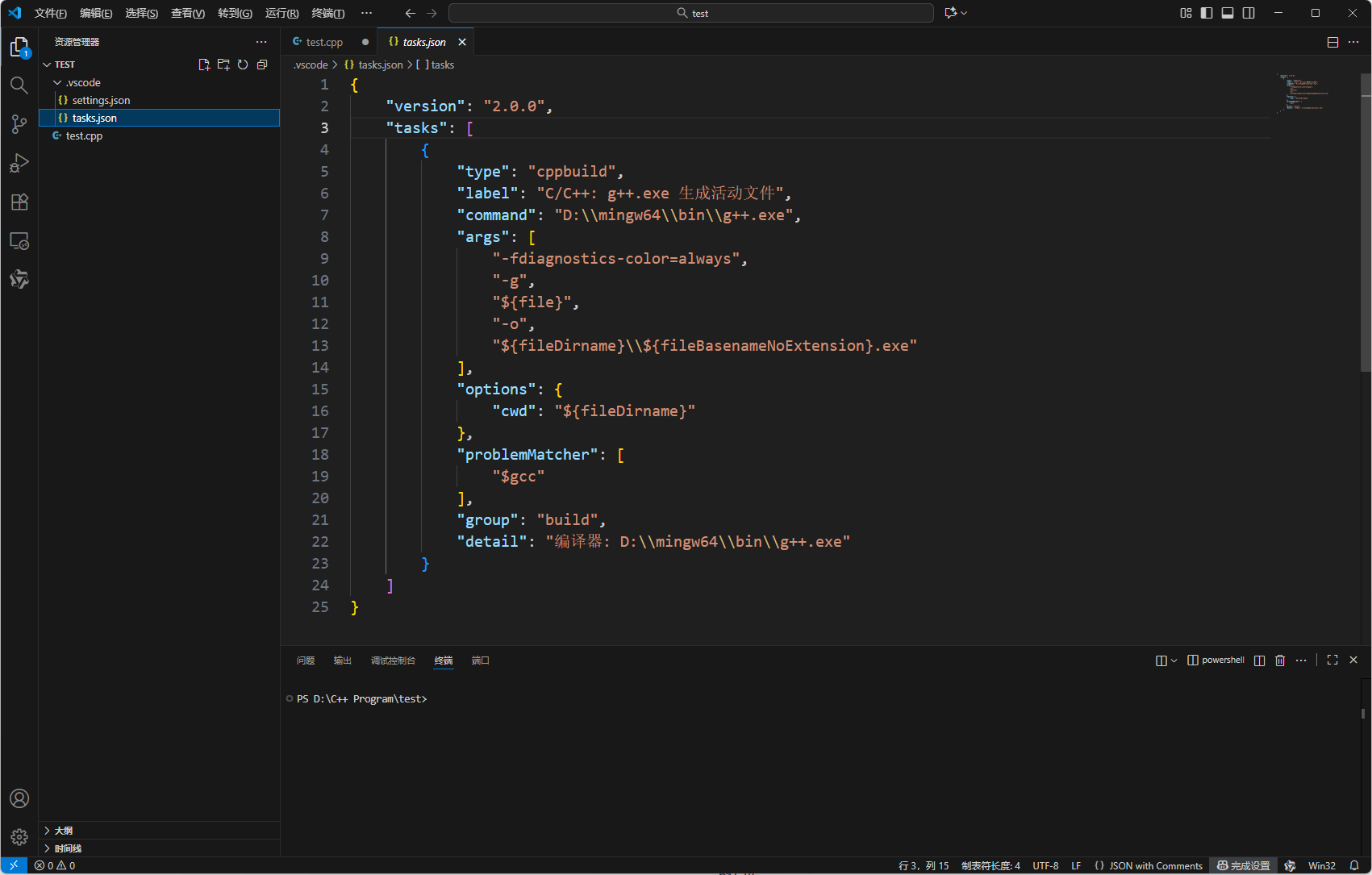 随后vscode便会自动帮你生成settings.json和tasks.json文件