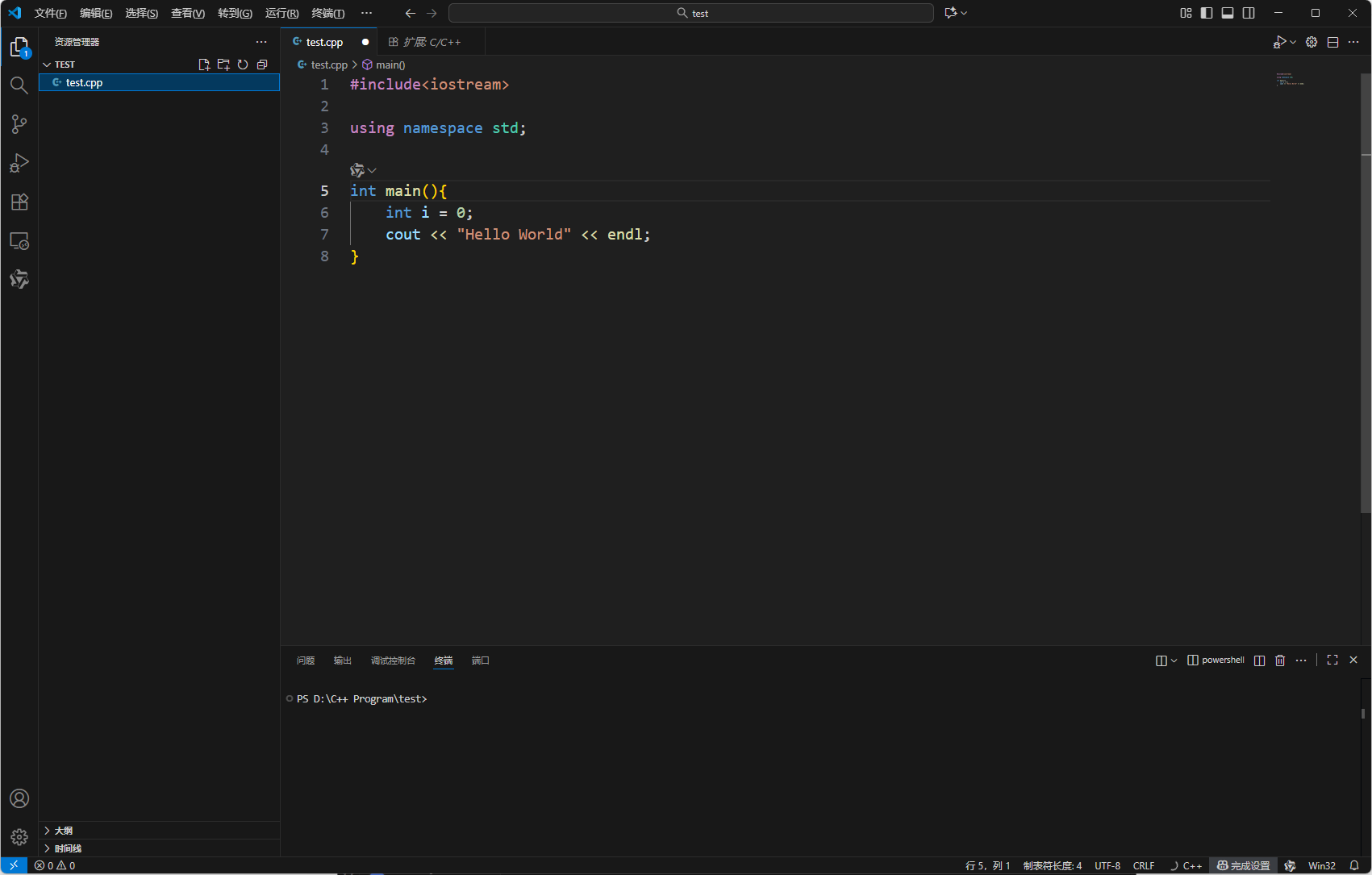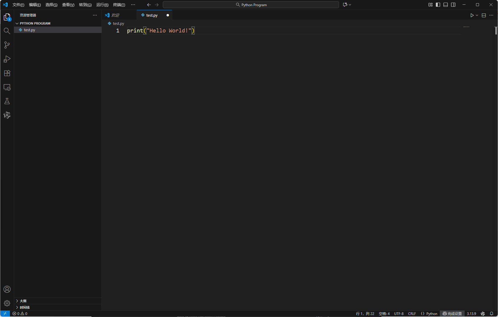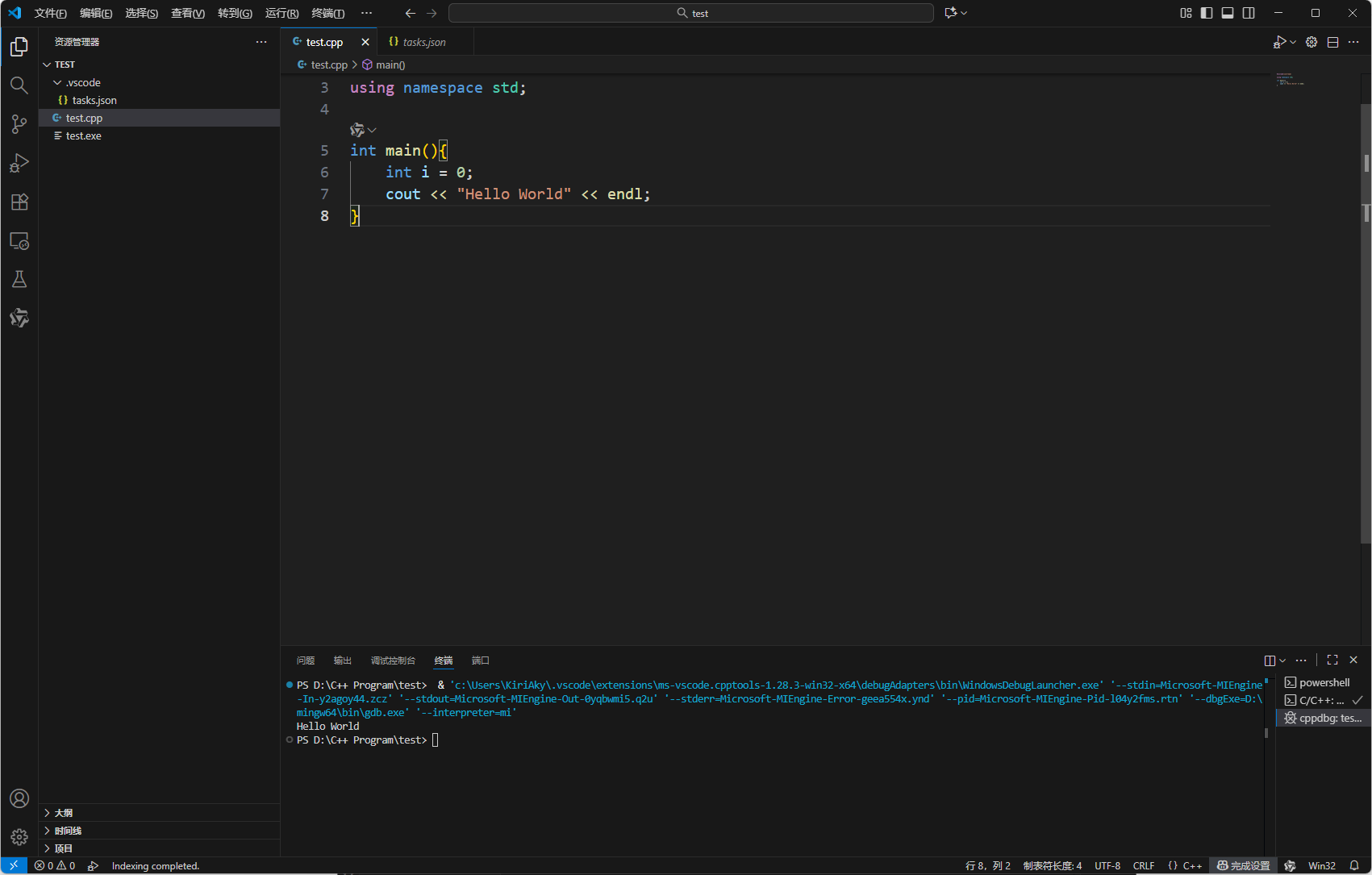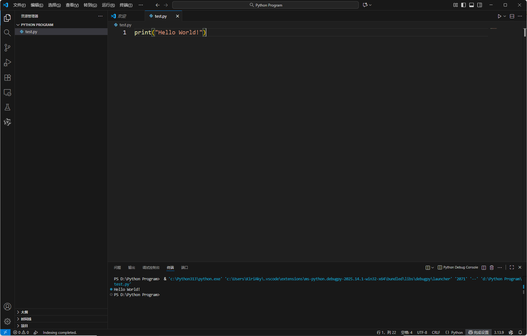 可以看到终端已经正确打印出 Hello World