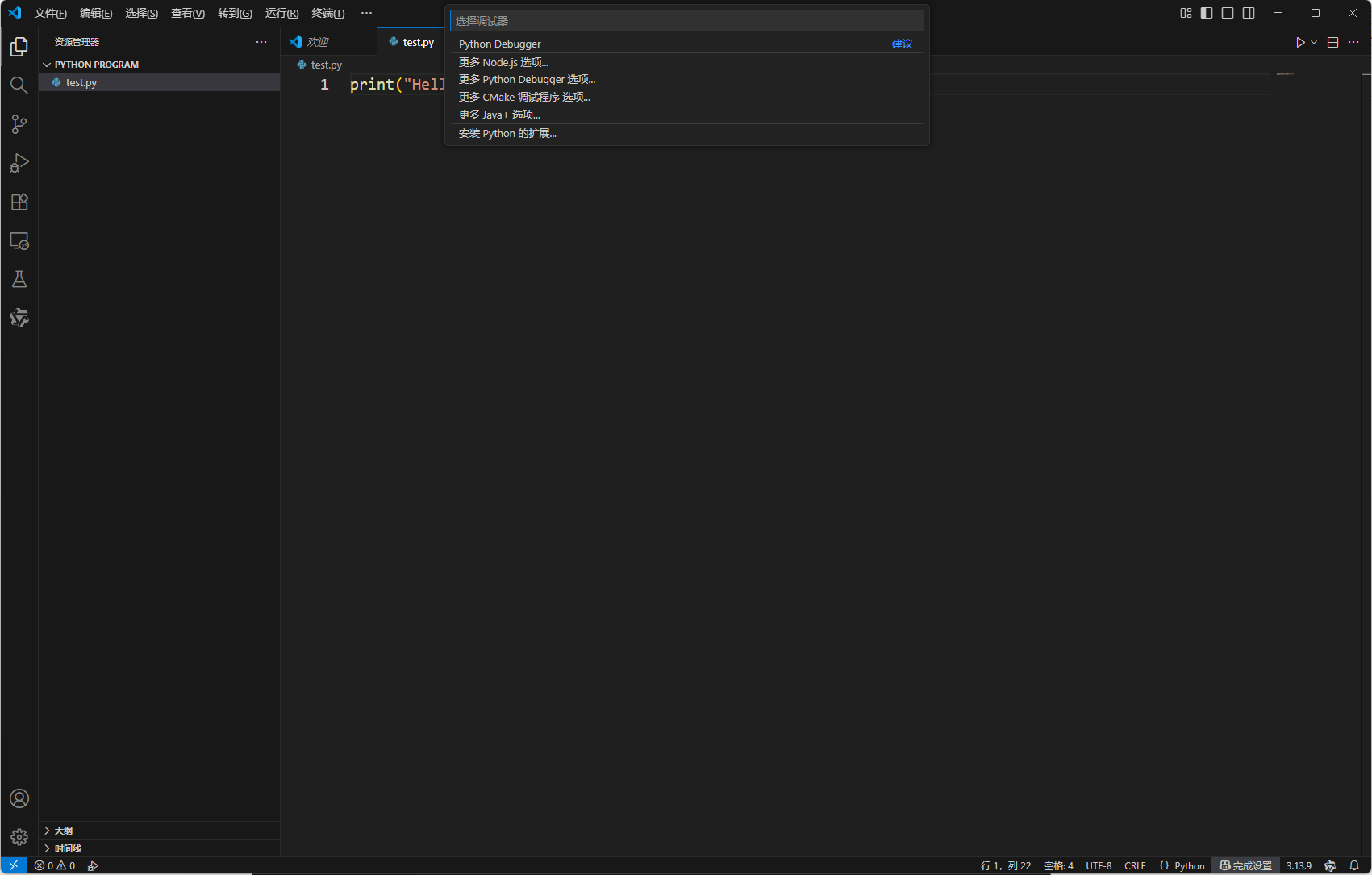 随后,选择Python Debugger即可