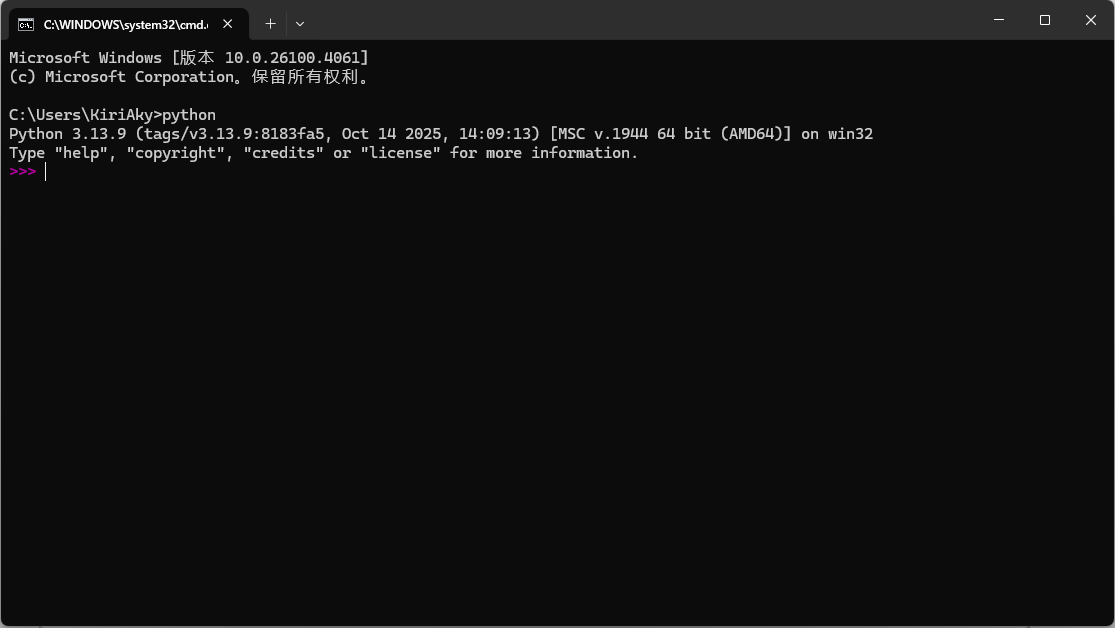 在命令提示符或者 Terminal 中输入 python,出现上述对应的版本号即说明安装和配置成功